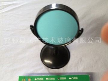 帶底座凹透鏡 直徑:10厘米 焦距:負300mm 幼兒園小朋友 或者中小學生認識凹透鏡的特點 學習凹透鏡光學原理的的器材 尺寸大也時候教師教學演示用教具 知識拓展閱讀: 凸透鏡與凹透鏡可以從以下幾個方面加以區(qū)別:外形特征、對光線的作用、成像特點及用途等。具體方法如下: 方法一:用手摸,鏡子的中央部分比邊緣厚的是凸透鏡,鏡子的中央部分比邊緣薄的是凹透鏡。 方法二:隔著鏡子觀察距鏡子較近的書上的字,有放大作用的是凸透鏡;字變小的是凹透鏡。 方法三:隔著鏡子觀察距鏡子較近的書上的字,移動鏡子,若發(fā)現像的移動方向總是與鏡子的移動方向相同,則該鏡子是凹透鏡;若發(fā)現像的移動方向總是與鏡子的移動方向相反,則該鏡子是凸透鏡。 方法四:隔著鏡子觀察窗外的物體,若能看到上下左右都顛倒的像,這種鏡子是凸透鏡;若看到像是正立的,這種鏡子是凹透鏡。 方法五:將點燃的蠟燭放在離透鏡適當距離處,在另一側光屏上能得到倒立實像的是凸透鏡;無論怎樣調節(jié),在另一側光屏上不能得到像的是凹透鏡。 方法六:讓鏡子正對太陽光照射,在鏡子的另一側放一張與透鏡平行的白色卡片紙,耐心調節(jié)鏡子與紙之間的距離,能得到一個小亮點的是凸透鏡;始終不能獲得小亮點的是凹透鏡。 方法七:觀察陽光通過了兩副眼鏡在地面上形成的光斑,若形成光斑的中間比四周明亮,則鏡子是凸透鏡;若形成光斑的中間比四周暗,則鏡子是凹透鏡。 方法八:近視眼鏡,是用凹透鏡做成的。老花鏡,是用凸透鏡做成的。 說明:辨別凸透鏡與凹透鏡有好多方法,哪種方法好,要視具體情況而定。例如,如果待辨別透鏡的中央與邊緣的厚薄差異不明顯,就不能用“摸”的方法(況且精密光學儀器是不允許直接用手去摸的);在有太陽光與沒有太陽光的場合,所選的方法也不同。總之,一種好方法,應該簡便、易行、有效。它是隨場合變化而變化的,不宜一概而論。 技巧:當你想要判別兩件事物的相同和不同之處時,就需要用比較與對比的方法。比較就是找出事物的相似性,即共同特征。對比是找出事物的不同點。用這種方法來分析事物,能幫助你發(fā)現一些平時容易忽略的細節(jié)。